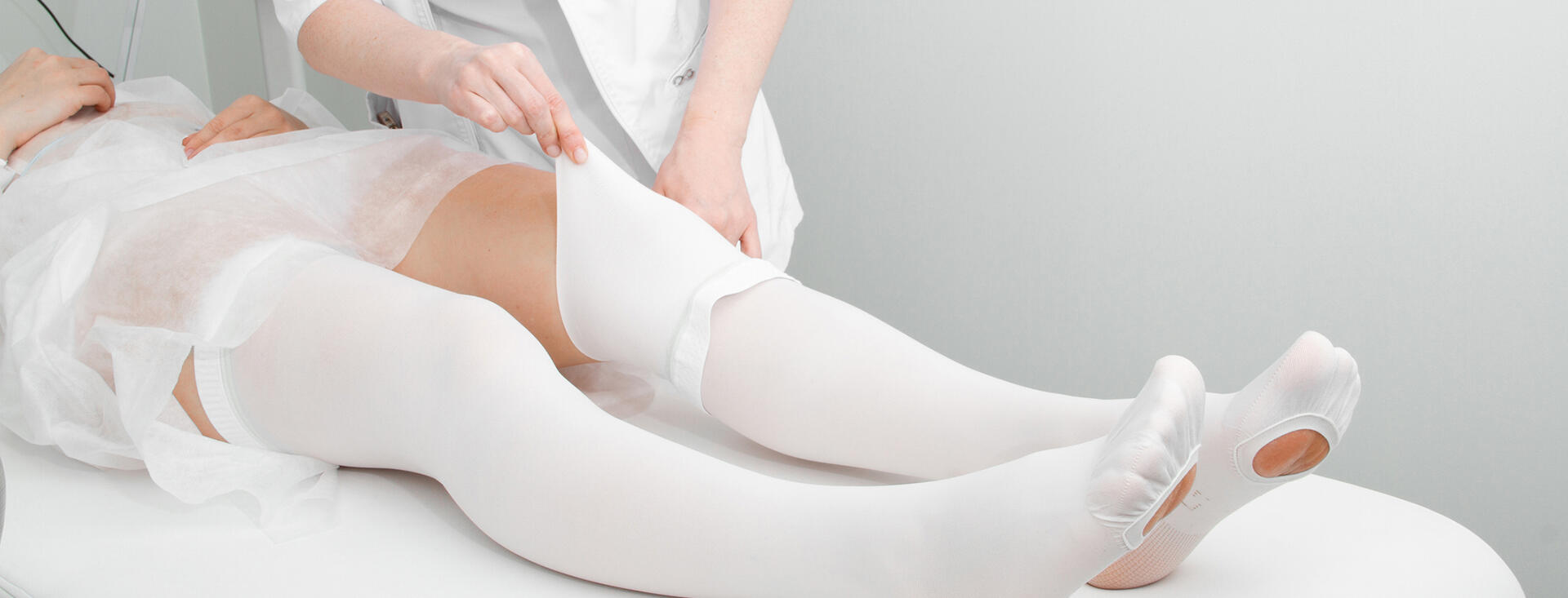 專為術後恢復或長時間靜止所設計,血栓襪採用從腳踝至大腿的溫和漸進壓力結構。結合無縫編織與高彈性Lycra材質,穿著貼合舒適。可依需求客製壓力等級、材質與檢查孔設計。